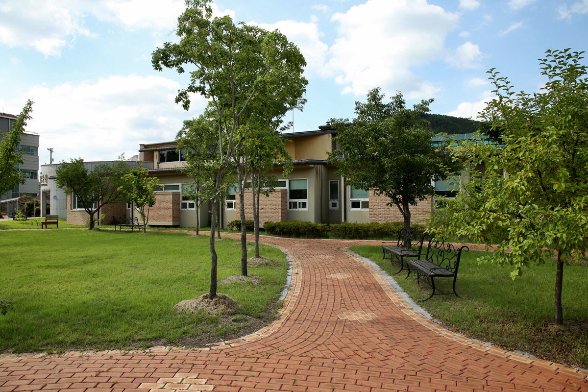 보건의료원과 종합복지관이 한풍루로 도로변에 위치해 있다면, 평화요양원은 공원을 사이에 두고 안전하게 뒤로 물러나 있다. 휠체어 등 보조 장구를 통해 거동할 수밖에 없는 어르신들에 대한 배려로 보인다. 넓은 잔디밭과 조경수, 그리고 중간 중간 앉아서 휴식을 취할 수 있는 의자들이 놓인 공원은 평화로운 마을의 광장을 연상케 한다.