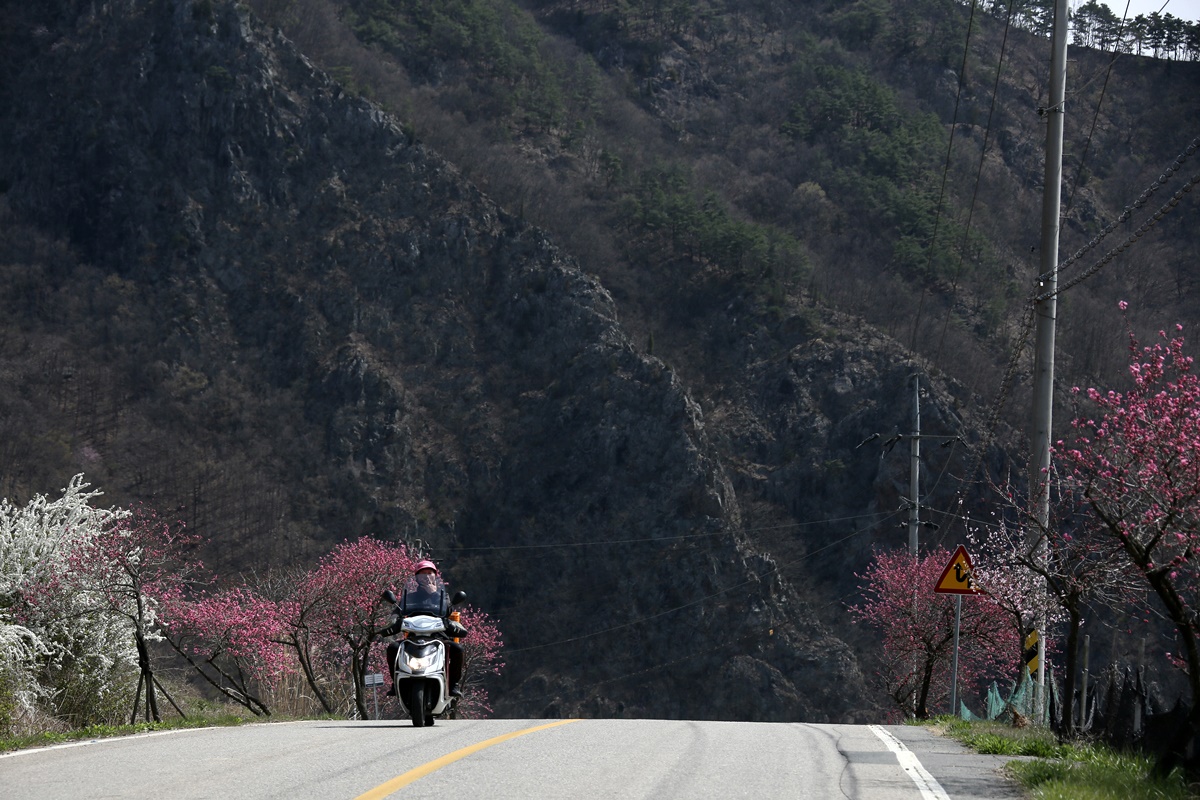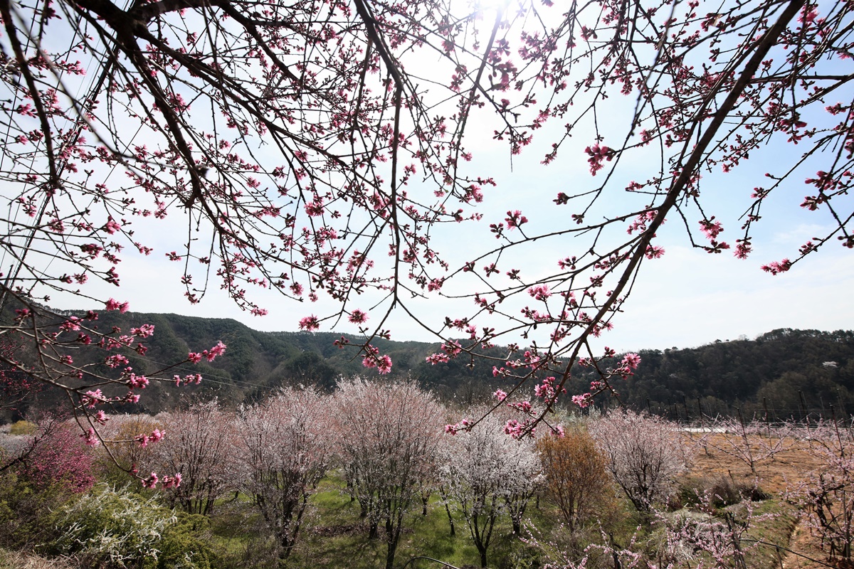 무주 최대 복숭아 산지인 앞섬마을에 복사꽃이 활짝 폈다.