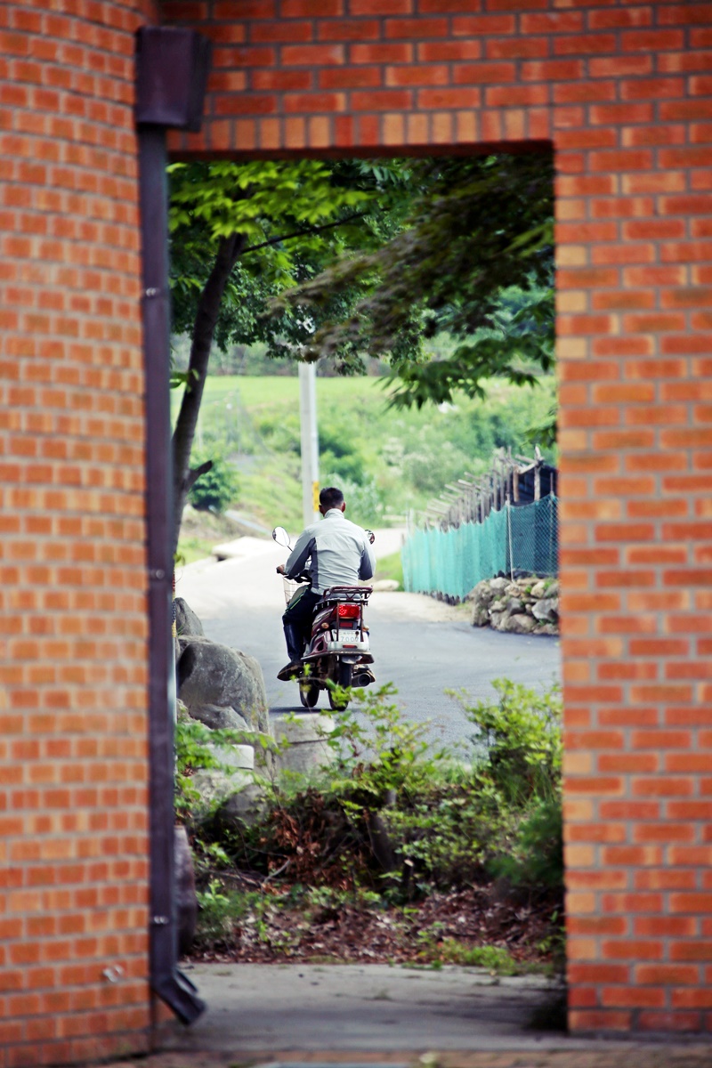 밖으로 나오면 안성면의 행정기관인 면사무소와 마주한다. 그 사이 논과 밭의 초록빛이 경계를 이루고 있어 농촌의 자연스러움이 느껴진다. 건물 좌우로는 마을과 청소년의 집을 편하게 오갈 수 있도록 작은 문처럼 통로가 나있다. 그 결과 남북으로 열린 안성면 행정복지센터 출입문처럼 긴 건물에서 주는 개방감이 느껴진다.