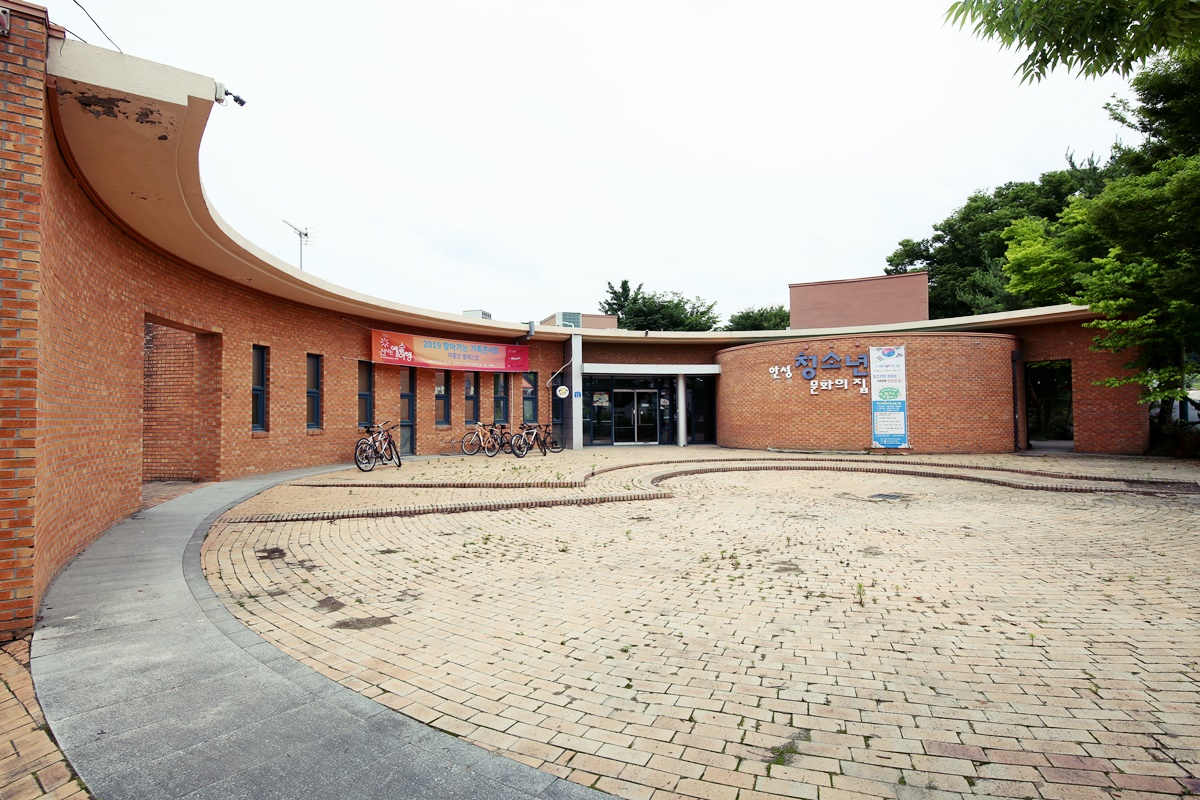 안성면 행정복지센터 후문과 마주한 청소년의 집 앞마당은 둥근 원을 중심으로 반원형의 나지막한 단층 건물이다. 건축가는 원은 해이고, 그곳을 향해 날아가는 새를 표현했다고 했다. ‘해를 좇는 새’, 해를 향해 태양을 향해 날아가는 청소년이 이 공간의 주인공이다. 정기용 건축가가 설계한 30여 채의 무주 공공건축물 중에 드물게 직각을 탈피한 건물이다.