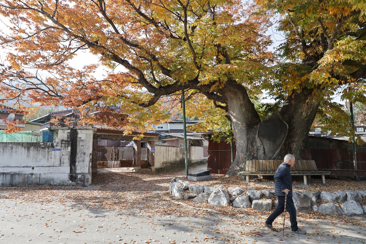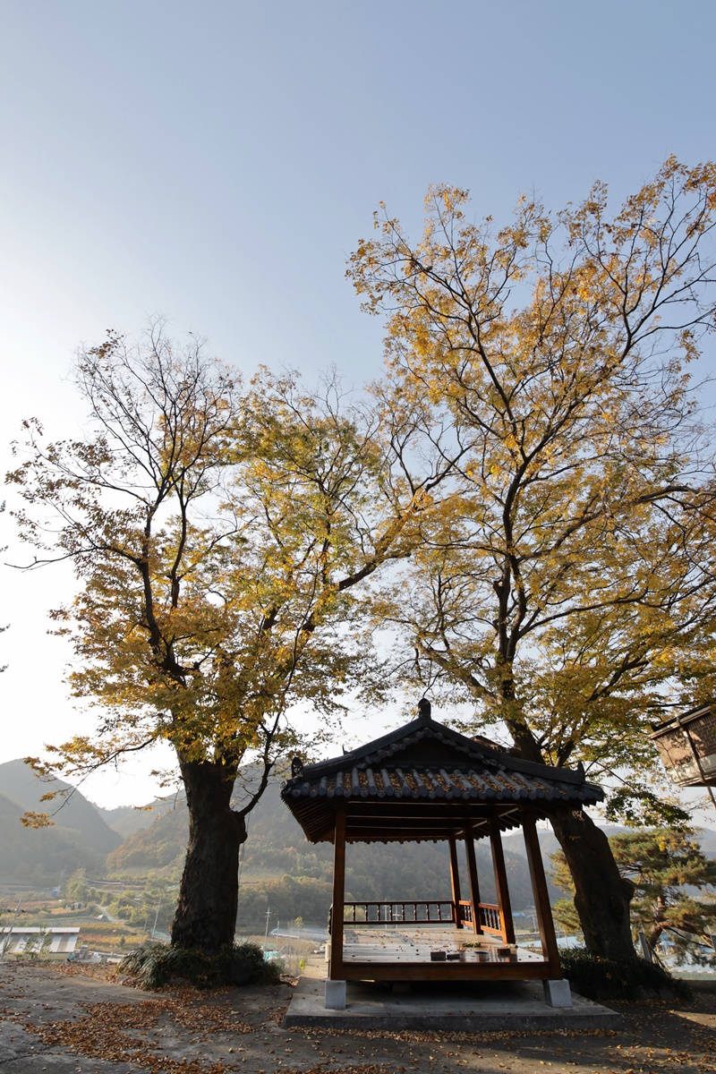마을 입구마다 아름드리 느티나무 한 그루씩 있다. 요즘이야 최첨단 시청각 시설까지 다 갖춘 시설들이 마을마다 있지만 옛날에는 이 나뭇그늘 아래 모여 마을의 대소사를 논의했다. 수령이 보통 150~500년 정도 되니 마을에서는 제일 큰 어른이다. 부지깽이도 한몫한다는 추수철이라 그런지 마을에는 사람 구경하기가 힘들다. 누구 하나 찾는 이 없는 늙은 나무는 올가을에도 눈부시게 빛나는 꽃을 피웠다. 낙엽비가 내린다. "나 아직 짱짱해"라고 소리치는 듯 나뭇가지를 힘차게 흔든다.