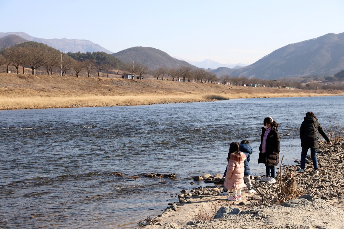 무주 반딧불장터에서 남대천을 따라 가는 도로 아래로 강변 산책로가 조성되어 있다. 서면마을 입구에 다다를 무렵의 벼랑 구간만 제외하고는 내내 강변길이 이어진다. 반딧불장터에서 서면마을까지는 4km, 길은 다시 1.5km 가량 더 이어지다 벼랑 아래서 끝이 난다. 이 길을 서면마을 사람들은 ‘S라인 길’이라 부른다. 굽이진 길의 모양 때문인데, 날이 풀리면서 이 길을 걷는 사람들이 부쩍 늘었다.