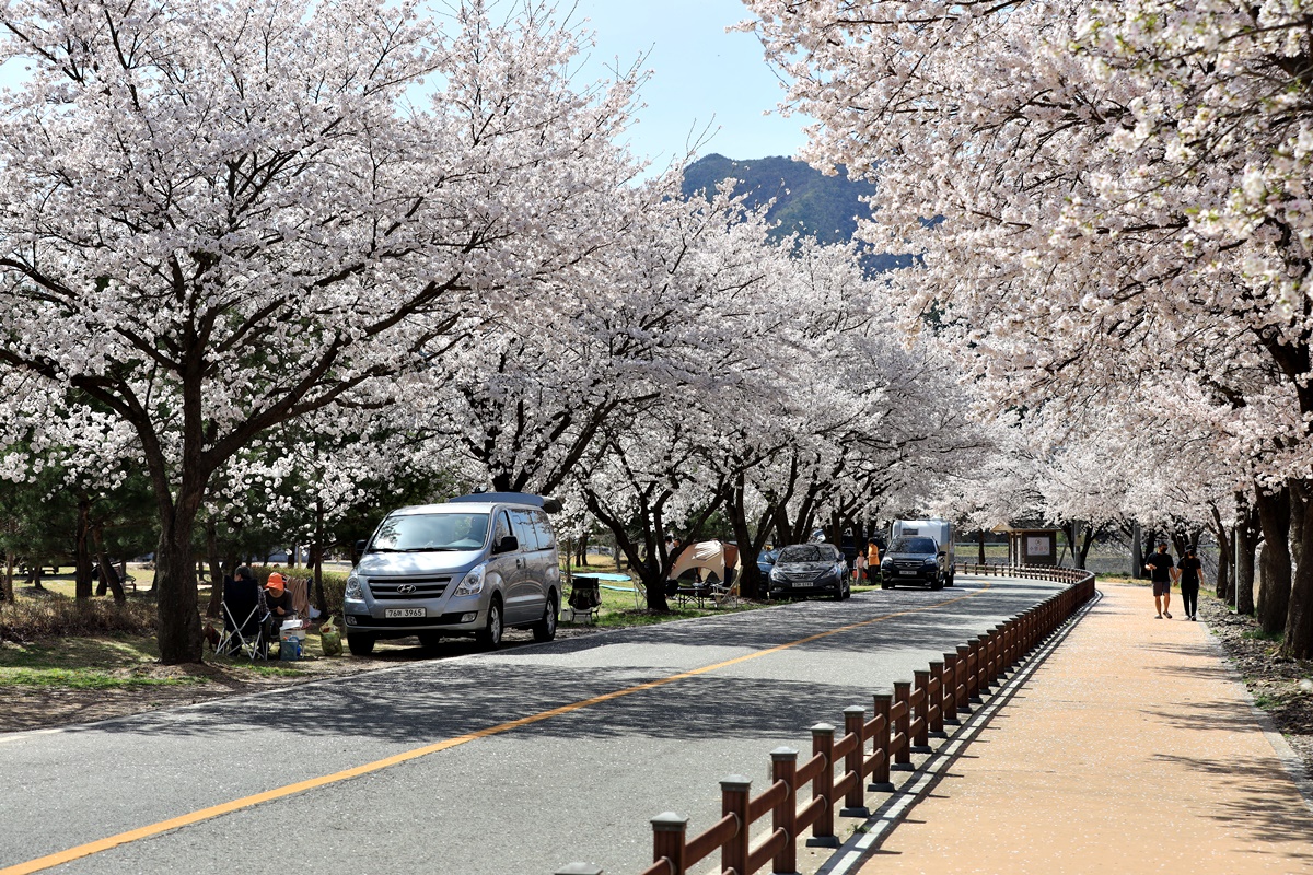 금강 천릿길 중 무주를 지나는 구간은 약 20km. 용담댐을 지난 금강이 강폭을 넓히며 비로소 강다운 면모를 보여준다. 대신 산과 산 사이 협곡을 지나는 강은 느리게 흐른다. 서면마을은 서정적인 강풍경이 아름다운 마을이다. 남대천과 금강이 합류하는 두물머리 서면마을은 이즈음 눈부신 벚꽃길이 펼쳐진다. 마을 앞을 가로질러 무주읍까지 약 5km 구간이 벚꽃길이다.