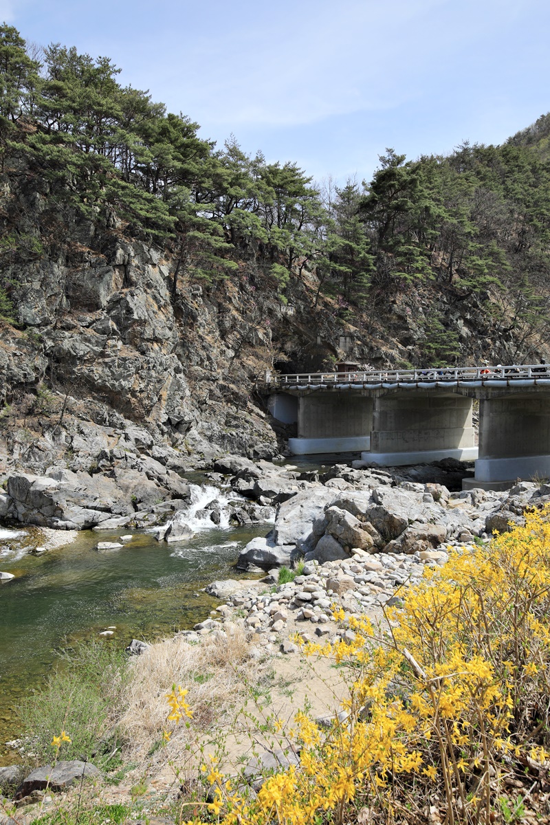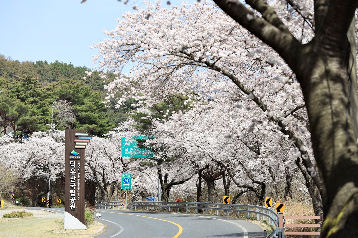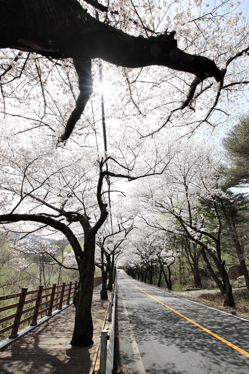 무주 벚꽃 로드라 할 만한 길고 깊은 길이 남대천을 따라 이어진다. 금강과 합류하는 남대천 하류 무주읍 대차리 서면마을에서 시작해 무주읍을 지나 설천면 나제통문, 그리고 구천동 계곡을 따라 절정을 이룬다. 그 길이가 무려 40여 km에 달한다. 구천동 벚꽃길은 한때 축제를 열 만큼 소문난 길이다. 벚꽃이 만개하면 한눈에 쏙 들어오는 굽은 길에서 사진을 찍는 인파로 인해 지나는 차량들도 서행을 한다. 지금은 도로변에 나무 덱을 깔아 산책로를 만들어 놨다.
