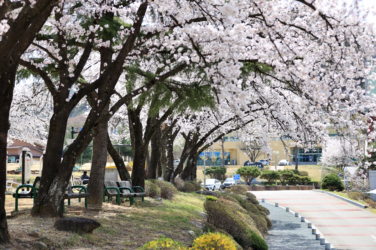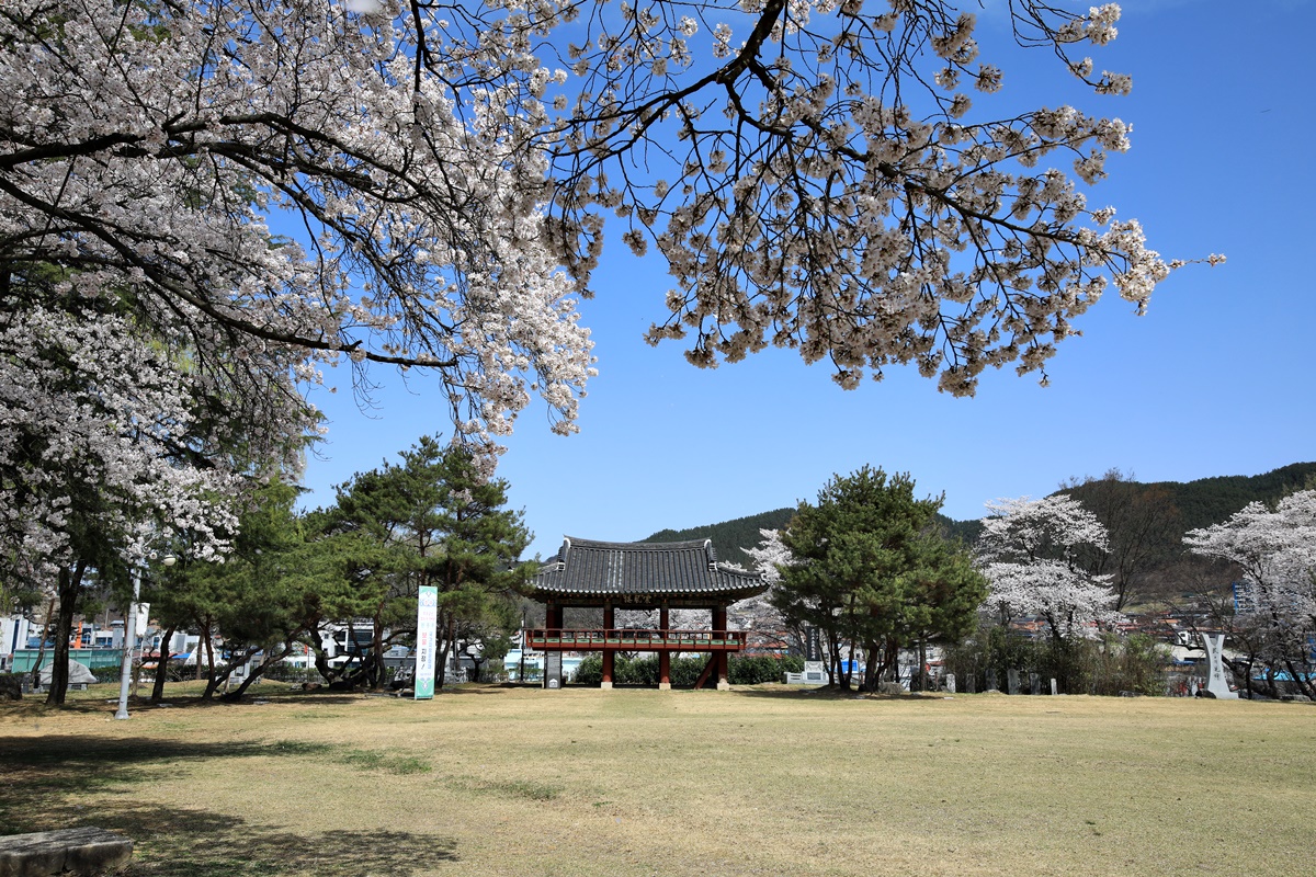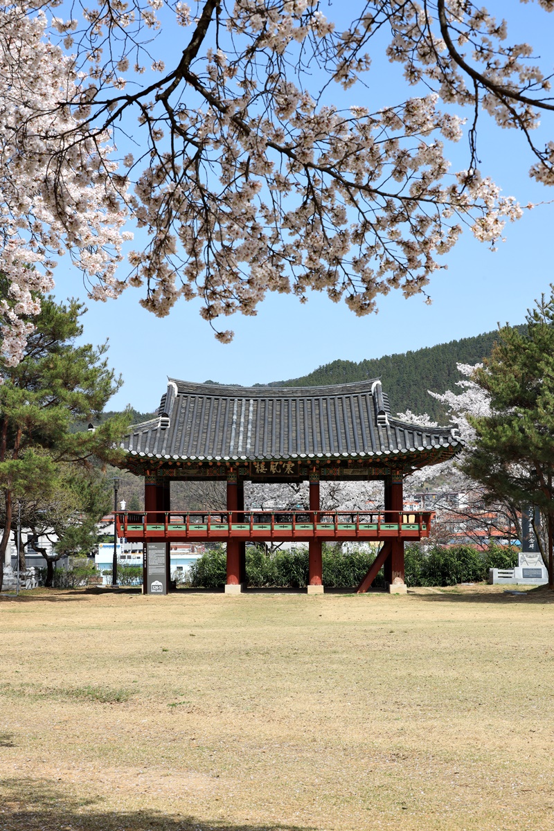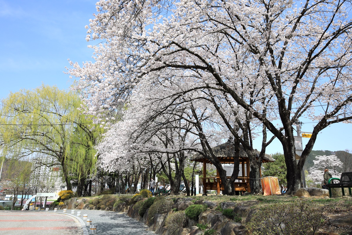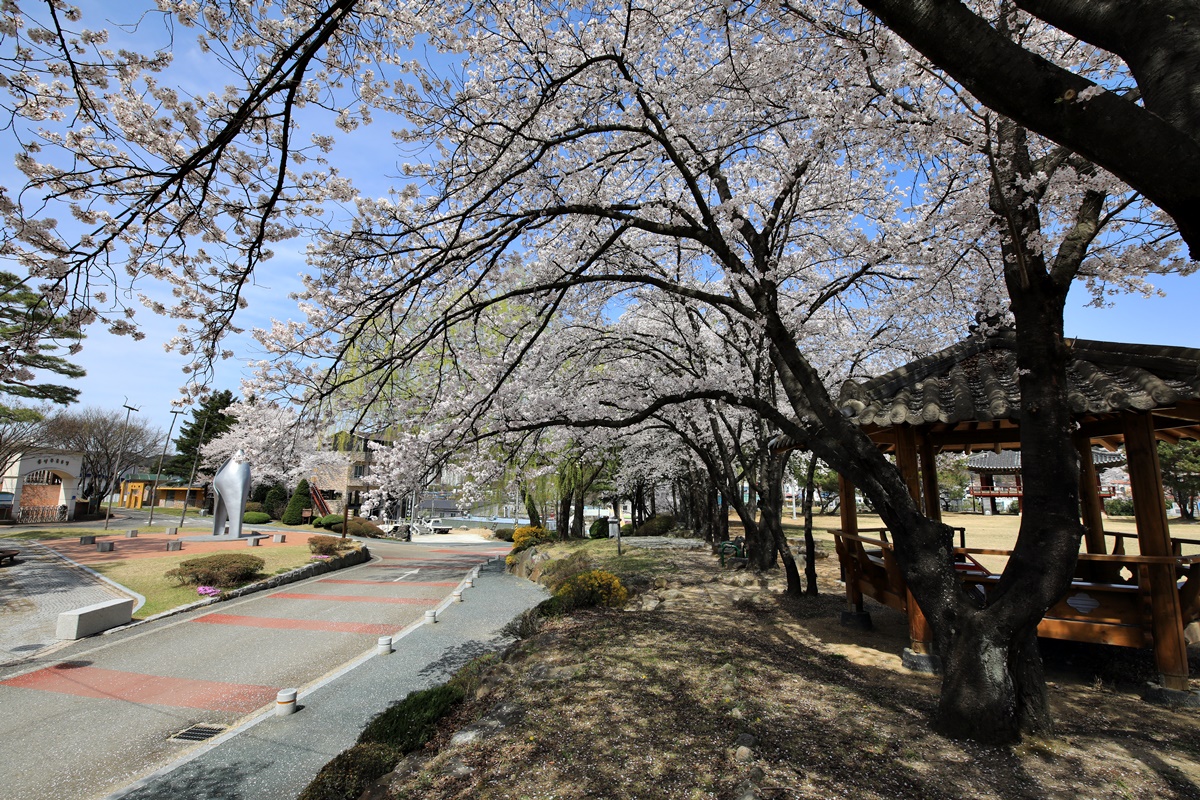 한풍루가 있는 지남공원은 무주읍 시외버스터미널 건너 언덕 위에 있다. 무주의 주요 행사가 열리는 장소이고, 넓은 잔디밭이 있어 아이들 소풍 장소로, 언제 가도 조용하고 한적해서 좋은 곳이다. 빙 둘러 도열한 벚나무에 꽃이 활짝 피었다.