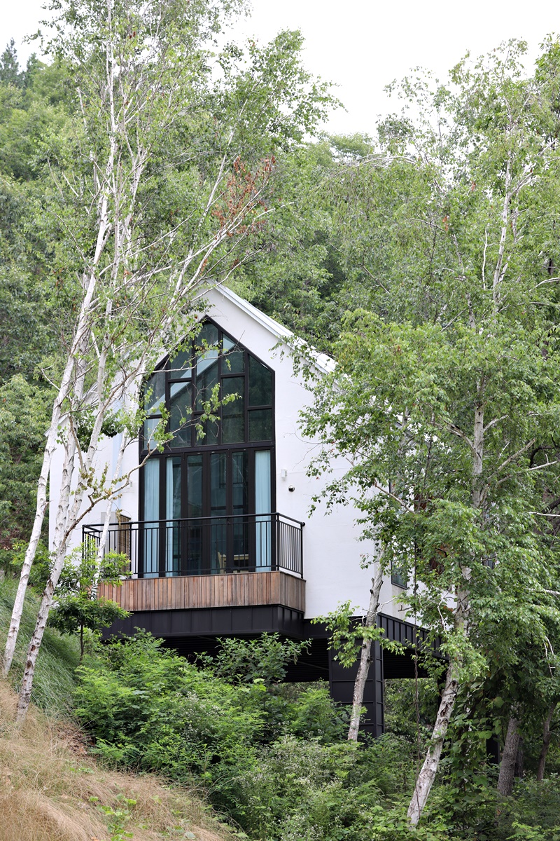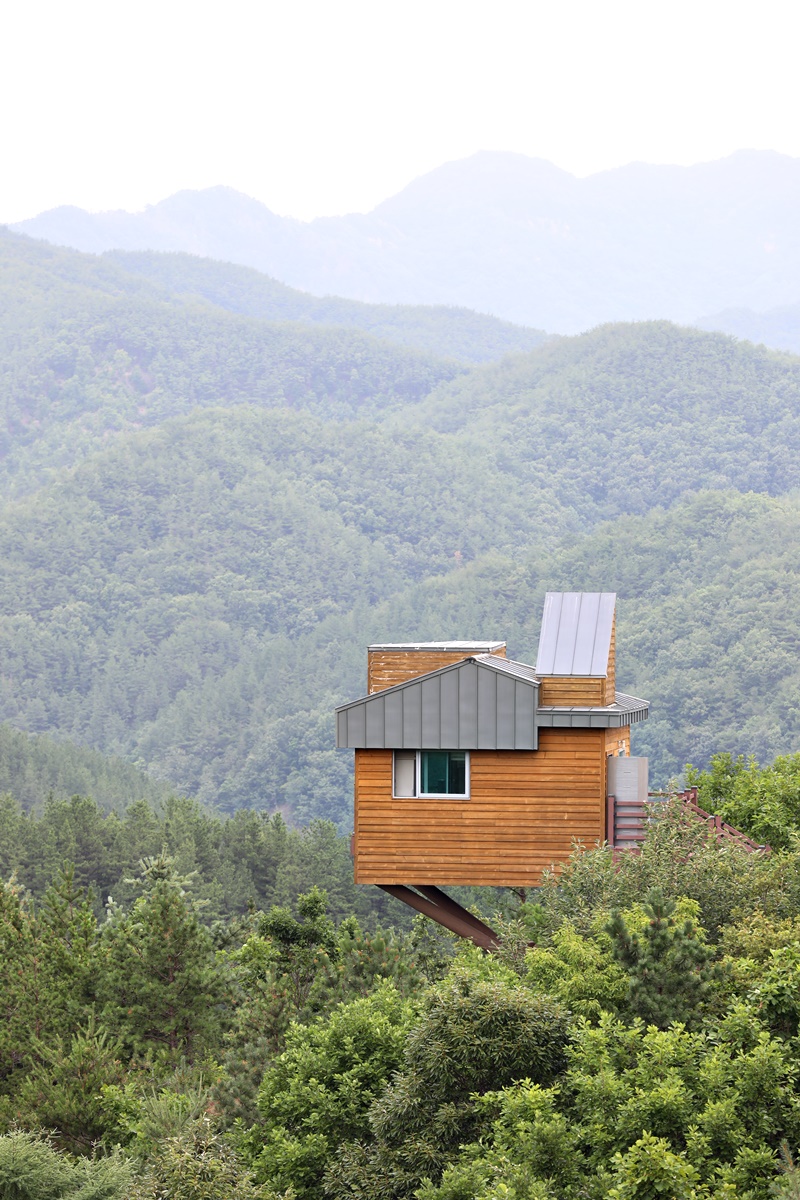 거의 산 정상부에 위치한 동굴집과 나무집은 전면이 탁 트여 있어 공중에 떠 있는 장면을 연출한다. 막힘없이 뻥 뚫린 풍경을 바라보며 하룻밤을 보냈다는 김희애 씨는 “주말 꽉 막힌 도로를 타고 서울에서 4시간을 달려온 보람이 있다. 상상 이상이다. 특히 이른 아침 산안개가 나풀거리는 모습은 두고두고 잊히지 않을 것 같다.”라고 했다.