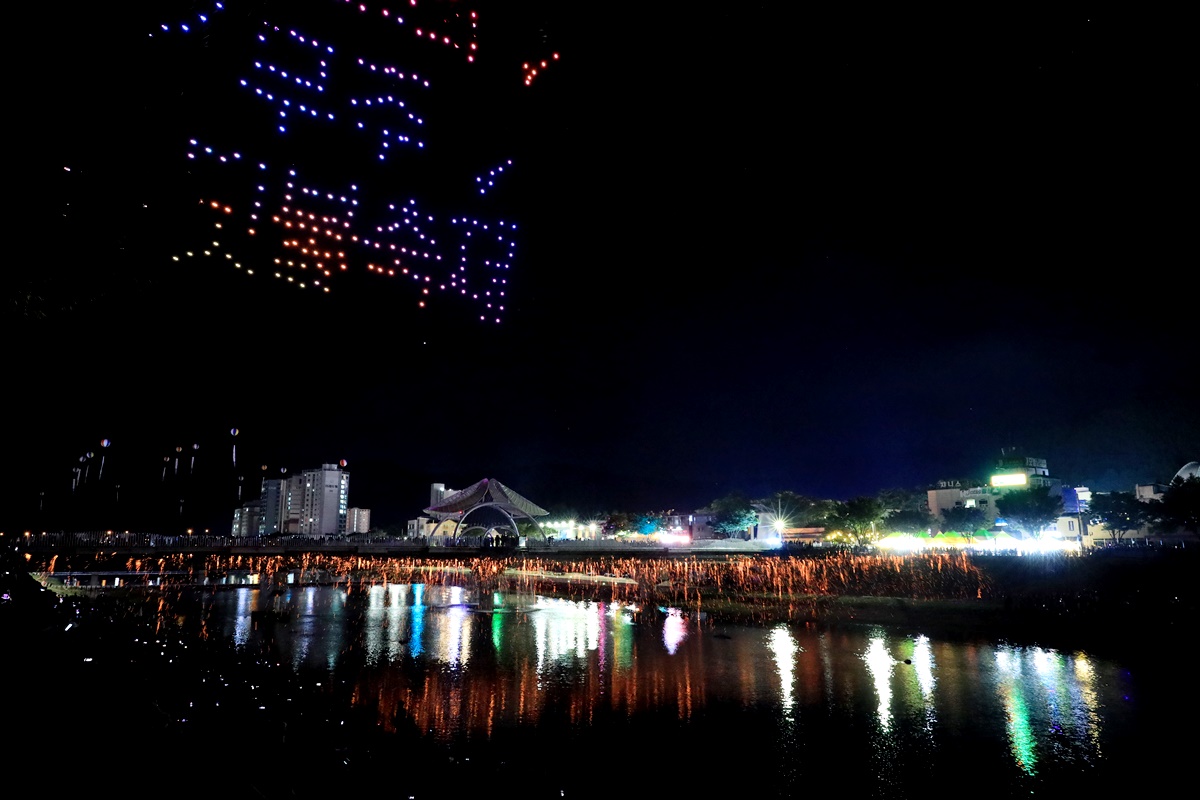 낙화놀이와 불꽃놀이, 드론쇼는 무주 남대천에서 9월 2일과 3일 두 차례 더 진행된다.