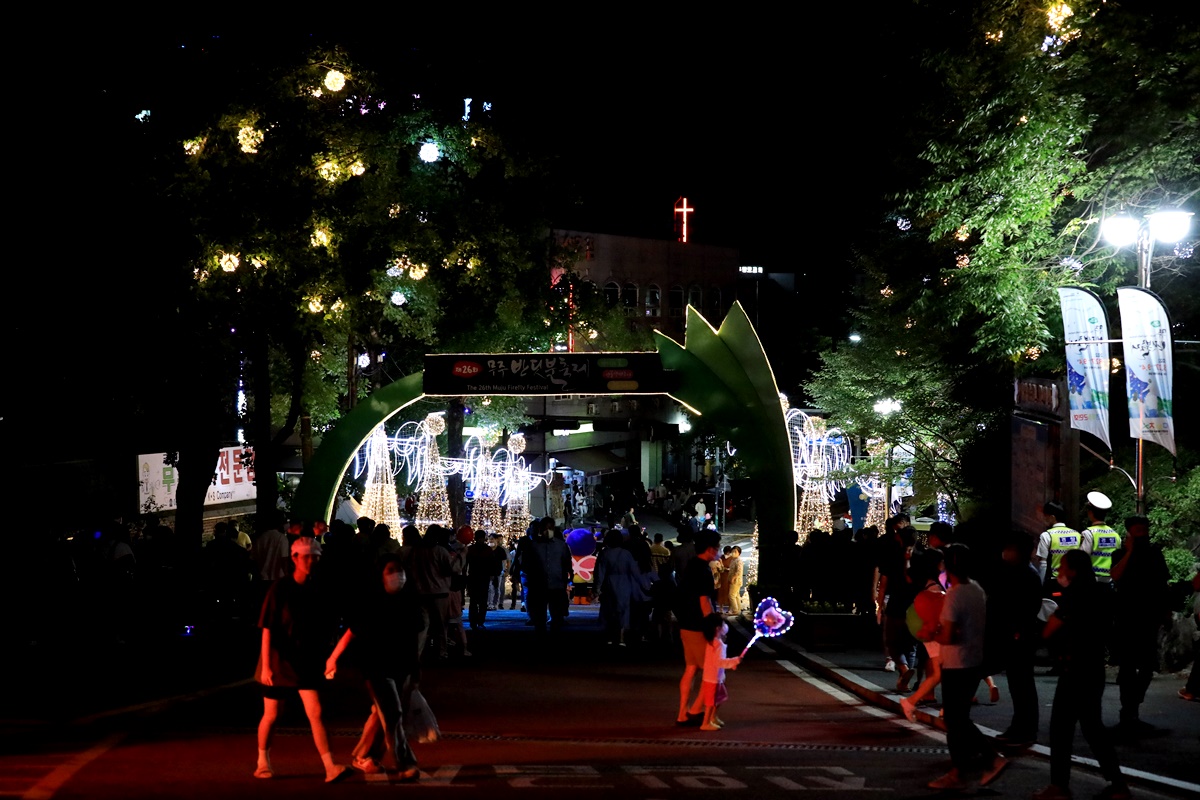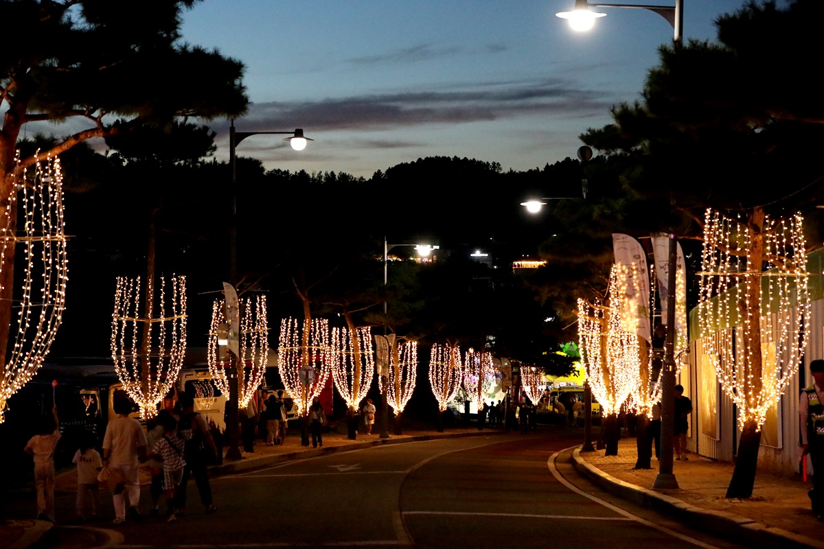 2022년 무주반딧불축제의 가장 큰 특징은 바로 ‘빛’이다. 야간 특정 시간대에만 볼 수 있는 반딧불이를 대신해 ‘캄캄한 밤(夜)’, ‘시원한 밤(夜)’을 테마로 한 야간 조형물은 색다른 볼거리를 제공했다. 행사장 진입로는 와인잔 조명으로 불을 밝혔고, 행사장 곳곳에 화려한 조명을 설치해 늦은 밤까지 관람객들에게 즐거움을 선사했다. 또한 총4회에 걸쳐 진행된 낙화놀이 시간에는 불꽃놀이와 무주에서 처음으로 선보인 드론쇼를 연계해 감동이 배가될 수 있도록 했다.