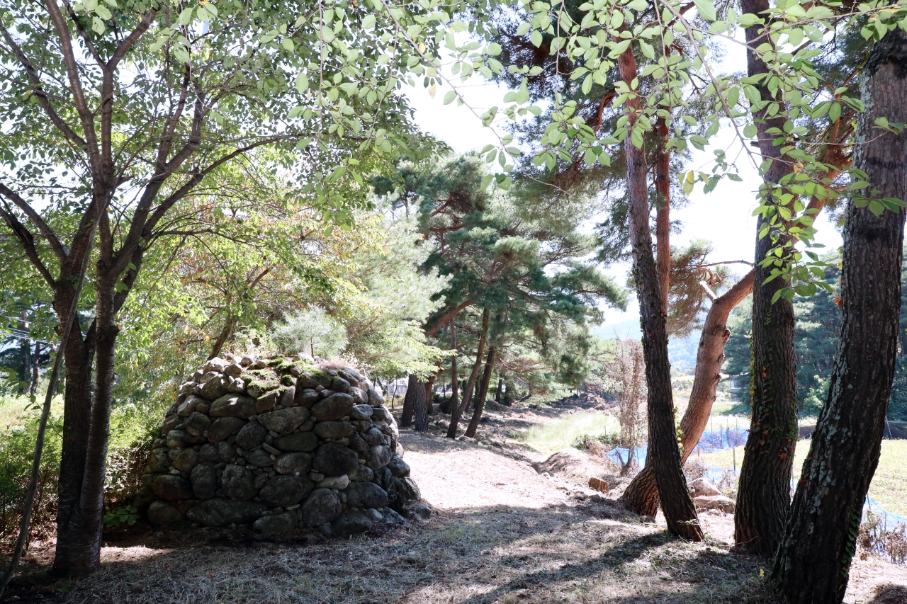 명천마을을 벗어났다. 아치 모양을 한 느티나무의 큰 가지가 양팔을 벌려 여행자를 환영하는 듯 서 있다. 수확을 앞둔 사과밭 풍경도 만난다. 발갛게 익어가는 사과가 먹음직스럽다. 요즘은 보기가 드문 구기자 열매도 보인다. 쌀알 모양으로 길쭉하고 빨간 열매다. 농가 마당에는 가을꽃이 한창이다. 구절초와 맨드라미가 흐드러지게 피었다. 농사일에 바쁜 와중에도 언제 이렇게 예쁜 정원을 가꾸었을까. 농가 주인의 고운 성품이 느껴진다.