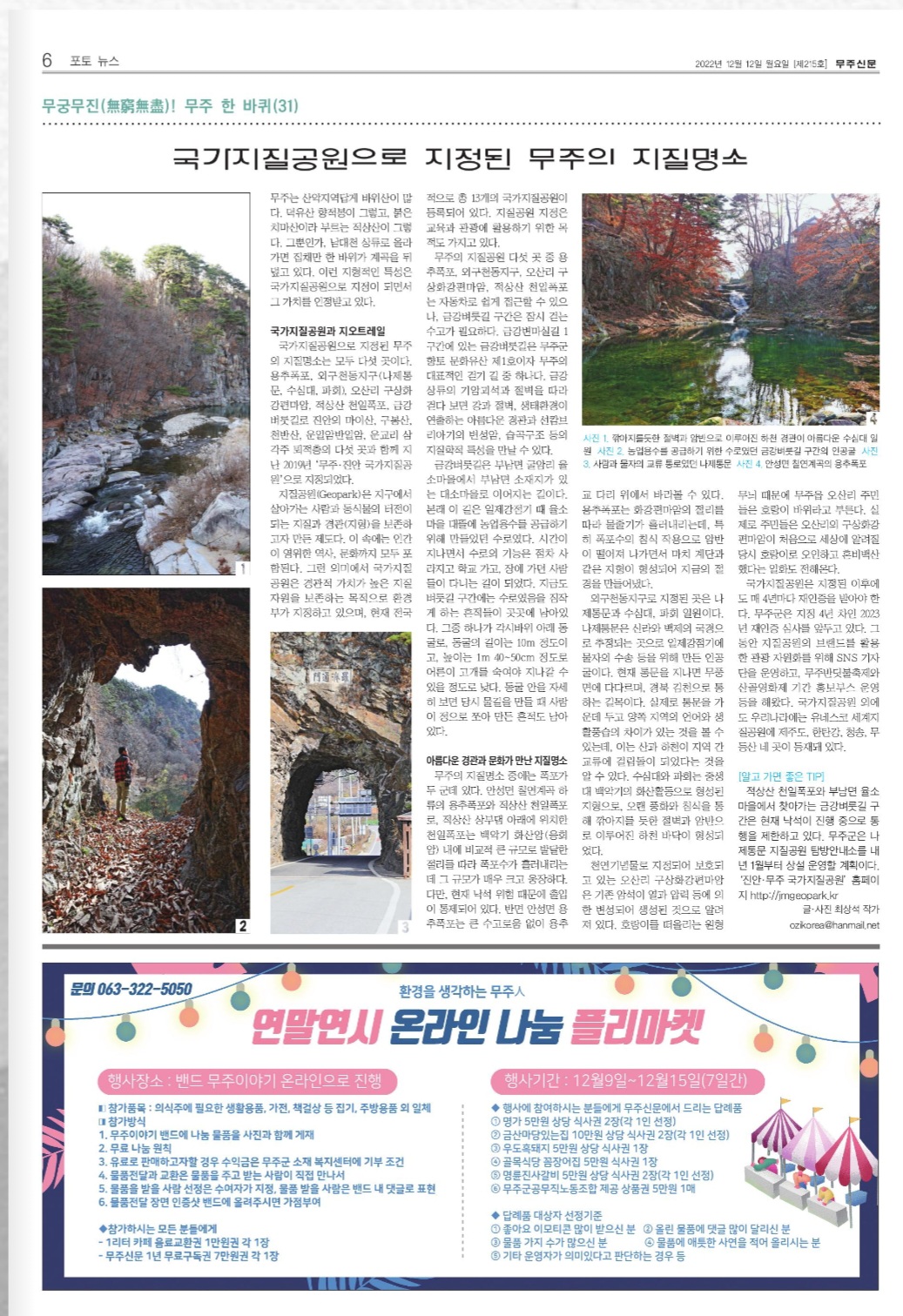 적상산 천일폭포와 부남면 율소마을에서 찾아가는 금강벼룻길 구간은 현재 낙석이 진행 중으로 통행을 제한하고 있다. 무주군은 나제통문 지질공원 탐방안내소를 내년 1월부터 상설 운영할 계획이다. ‘진안·무주 국가지질공원’ 홈페이지 http://jmgeopark.kr