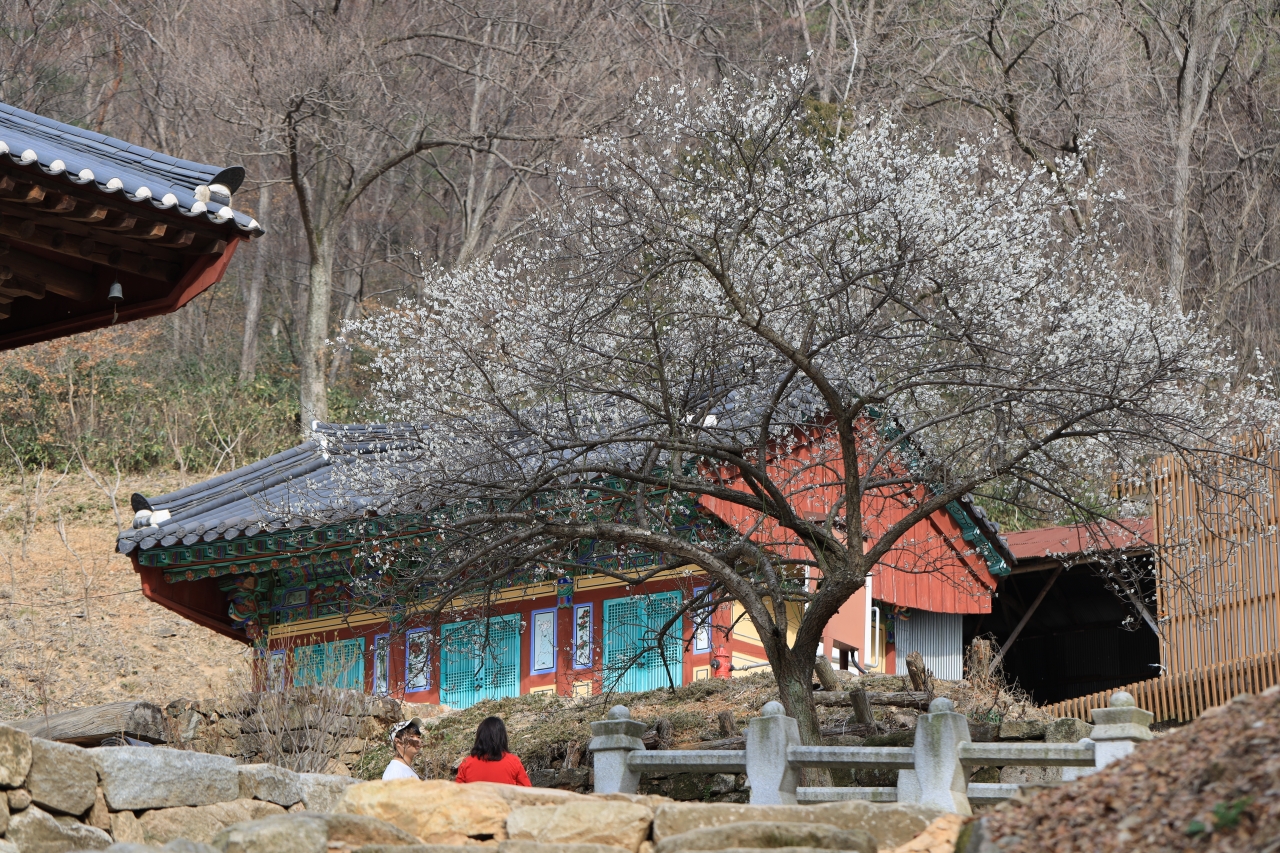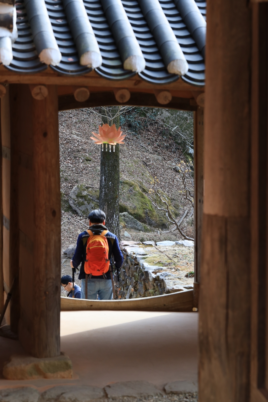 화암사로 오르는 불명산 숲길은 협곡 사이 실개천을 따라가는 운치 가득한 길이다. 철재로 만들어진 147계단을 올라서면 보물 제662호인 우화루가 보인다. 매화 향기 가득한 우화루 앞 의자에 앉아 바라보는 풍경이 화암사 1경이라 해도 손색이 없다.