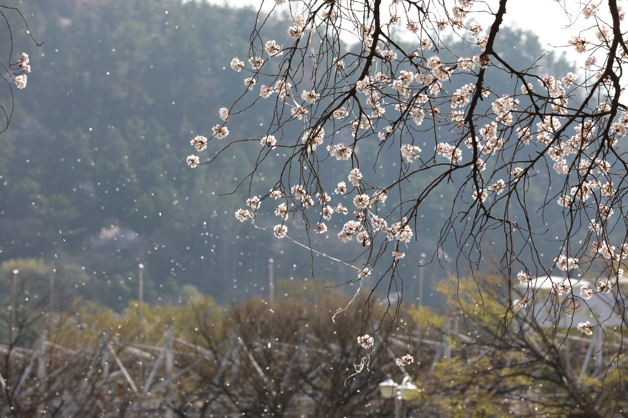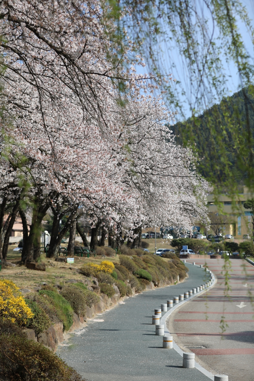 무주의 벚꽃은 읍내 시가지에서부터 시작된다. 무주군청을 가운데 두고 주계로와 단천로 일대의 벚꽃이 가장 먼저 핀다. 읍내 골목마다 줄지어 선 벚나무 가로수에 큼지막한 꽃잎이 열리고 이내 꽃비가 날린다. 그즈음이면 한낮의 한풍루에는 상춘객들이 삼삼오오 둘러앉아 이야기꽃을 피운다. 긴 겨울 끝에 만나는 봄날의 한가로운 풍경이다.