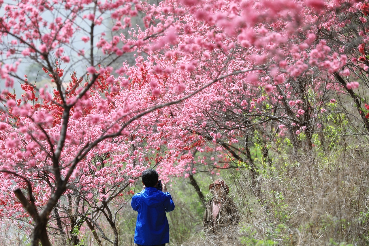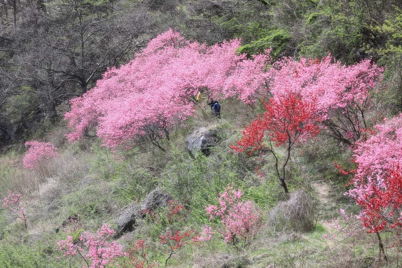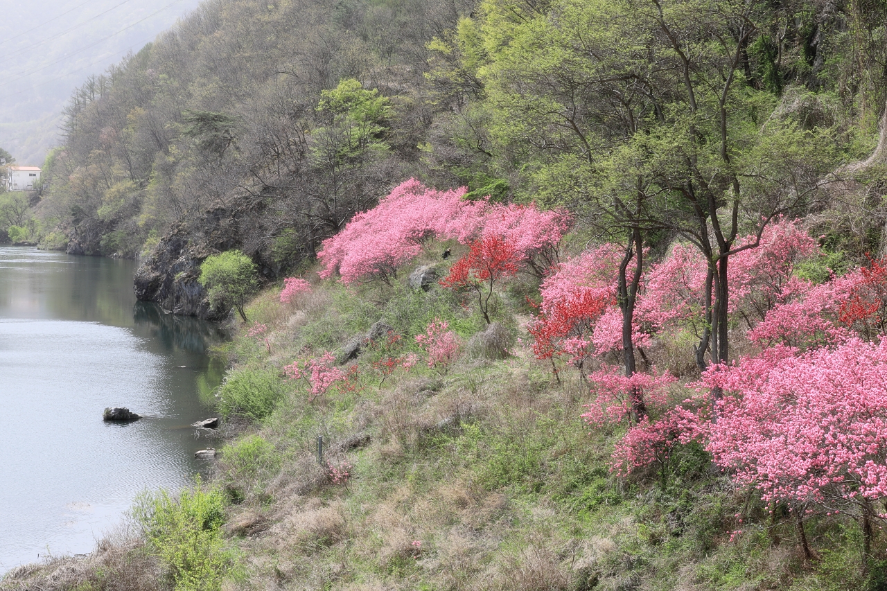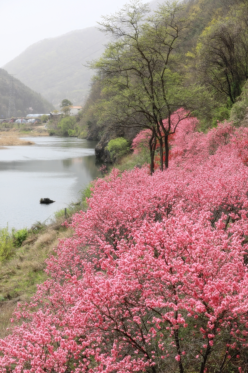 금강 변에 국화도 꽃(국화도화)이 한창이다. 예년에 비해 꽃잎이 풍성하고 화려하다. 국화도꽃은 국화꽃을 닮은 홍도화다. 멀리서 보면 홍도화처럼 보이지만 자세히 보면 꽃이 국화를 닮았다. 하여, 국화도화 또는 국화도 꽃이라 부른다.