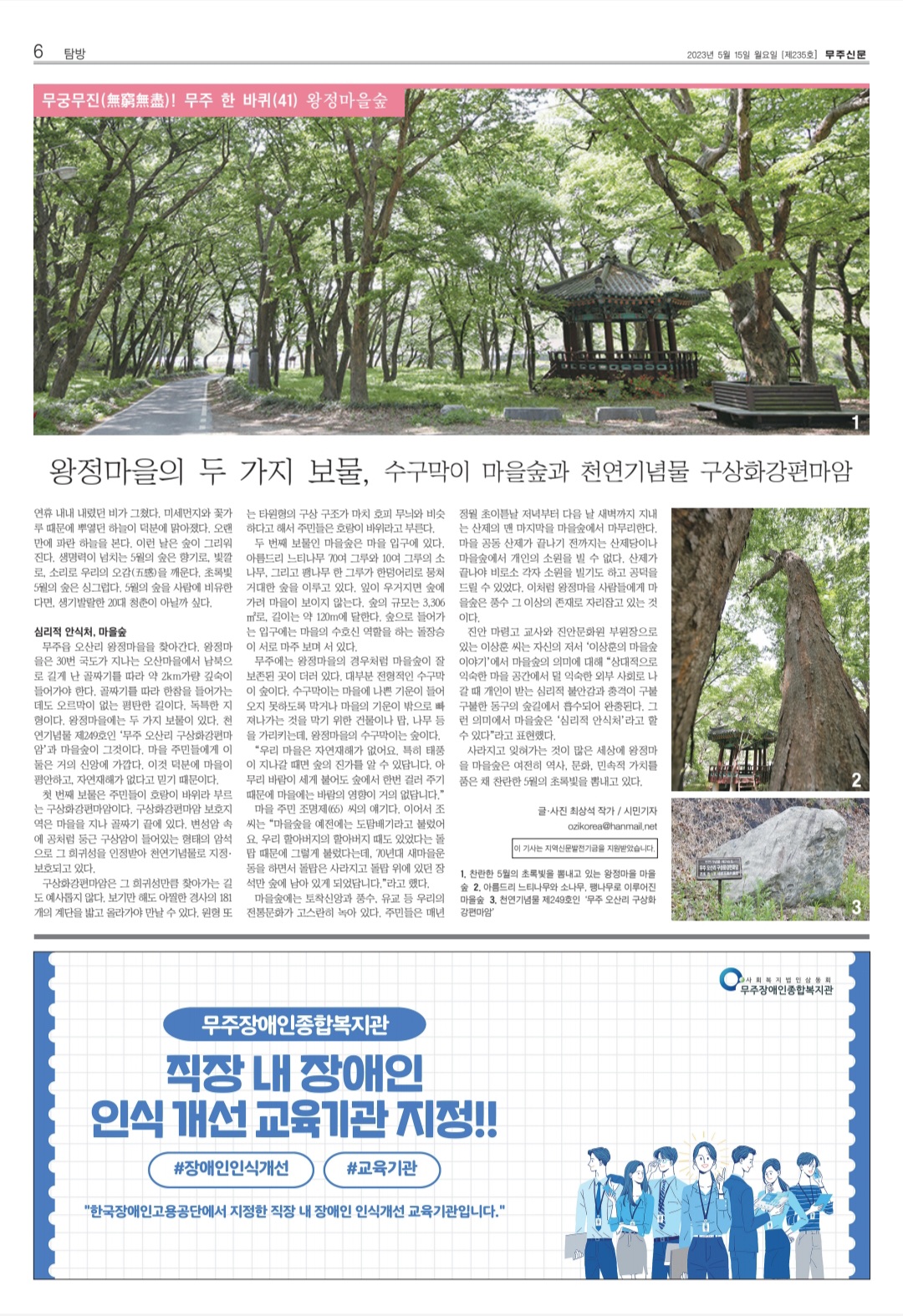사라지고 잊혀가는 것이 많은 세상에 왕정마을 마을숲은 여전히 역사, 문화, 민속적 가치를 품은 채 찬란한 5월의 초록빛을 뽐내고 있다.