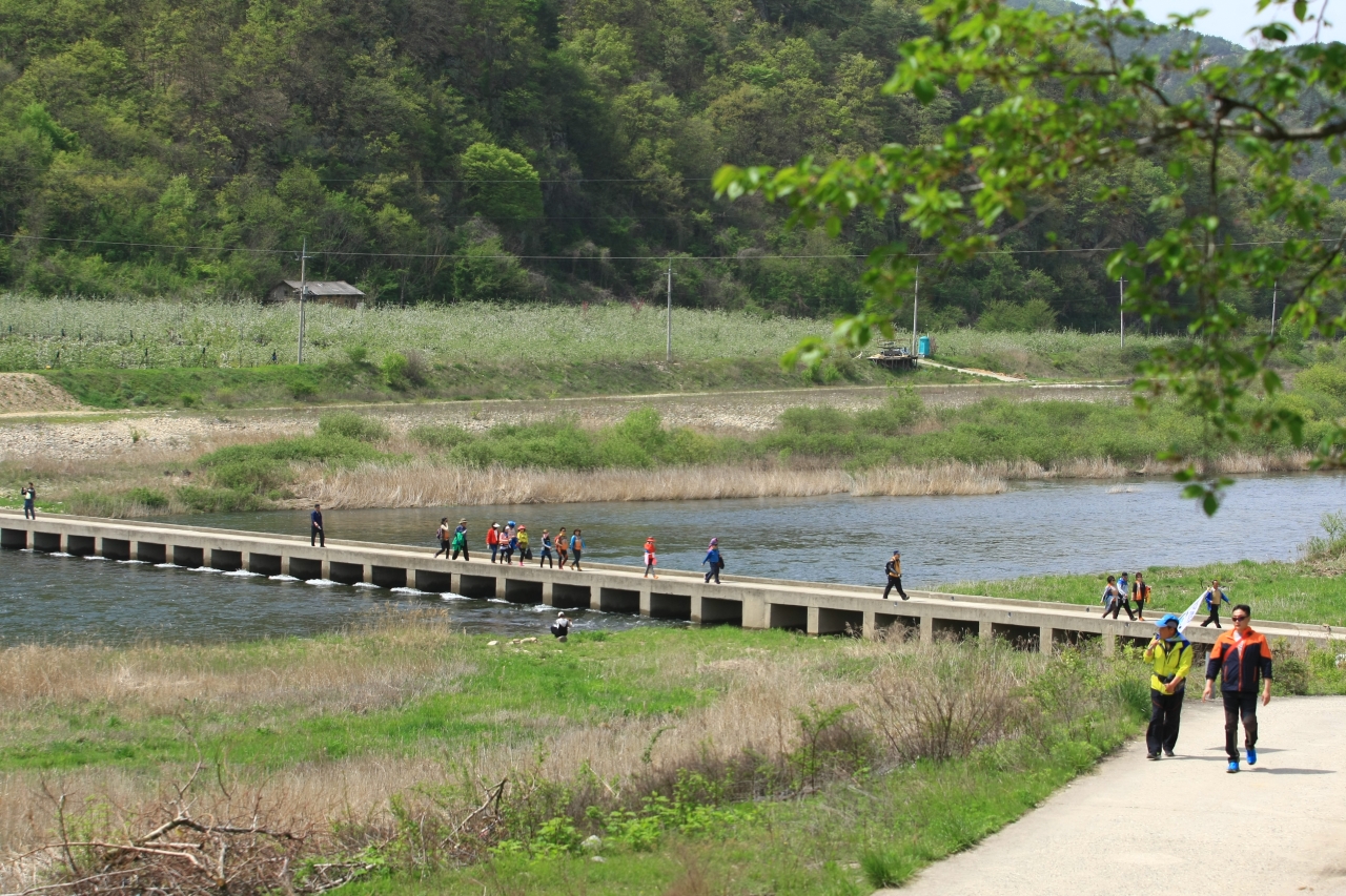 소이길은 여기에서 강 하류를 따라 내려간다. 옛길은 요대마을 앞에서 끝이 나고, 이젠 제방길을 따라 걷는다. 서면교까지는 약 1.7km, 다리를 건너면 시작 지점인 소이나루공원이다.