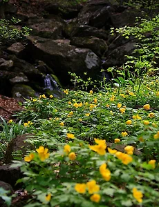 해발 1천 미터 적상산 피나물 군락 ‘천상의 화원’, 안국사 부처님 오신 날을 맞아 안국사에 들렸다 적상산으로 향한다. 산정은 여전히 연둣빛이다. 우리나라 최대 피나물 군락지인 ‘천상의 화원’은 해발 1천 미터 산꼭대기에 있다. 이상기온 때문인지 올 봄꽃 개화시기가 뒤죽박죽이더니 색감도 만족스럽지 못하다. 대신 연둣빛 숲 속에서 만난 노란 꽃을 피운 피나물 군락은 가히 환상적이다. 2019. 5. 13.